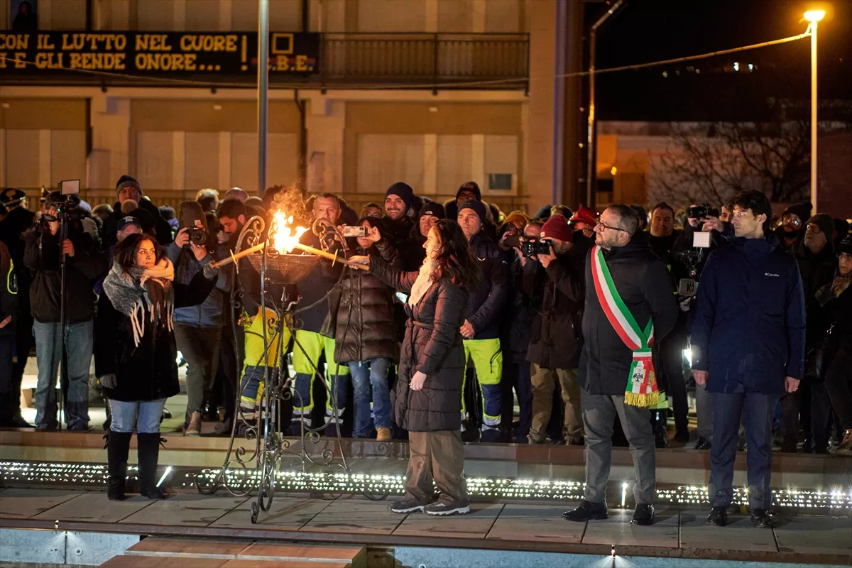 Yürüyüşün varış noktası olan L'Aquila Depremi Parkı'ndaki meşale, Kahramanmaraş merkezli depremlerden etkilenenlere dayanışma mesajı verilmesi için İtalya'da eğitimlerini sürdüren Türk araştırmacı Cansu Sönmez ile Suriyeli Rasha Youseff tarafından yakıldı.