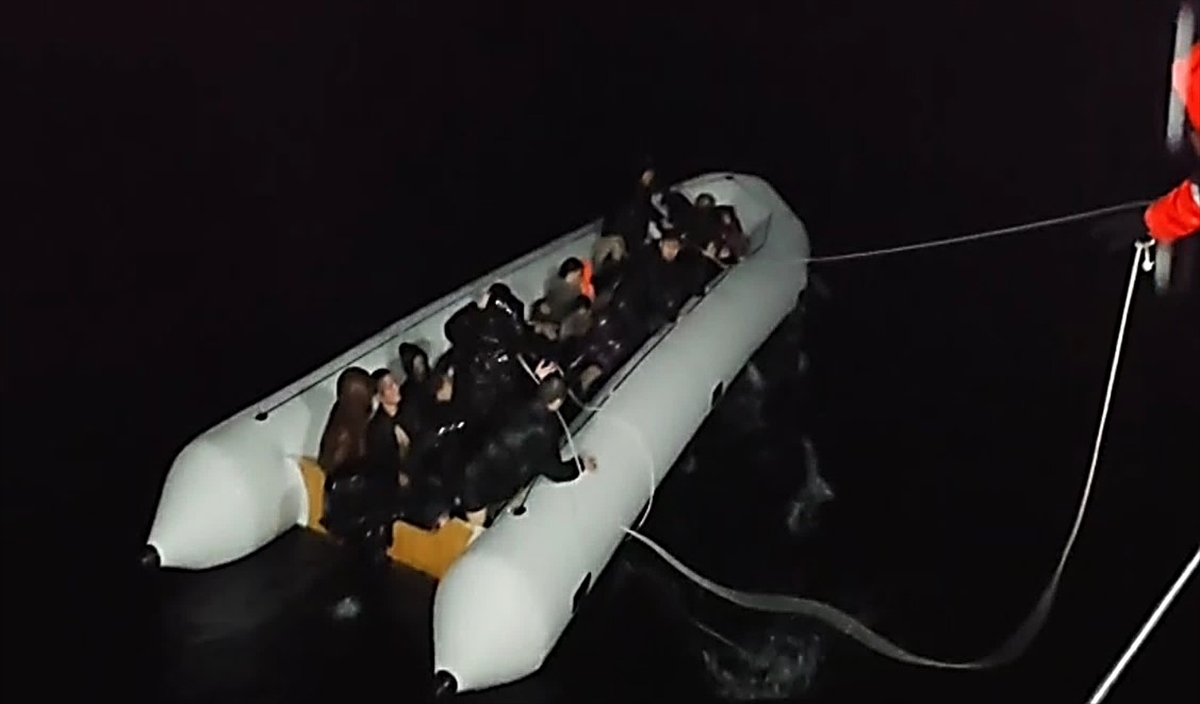 Yunanistan unsurlarınca Türk karasularına geri itilen can salı içindeki 11'i çocuk 27 düzensiz göçmen kurtarıldı.