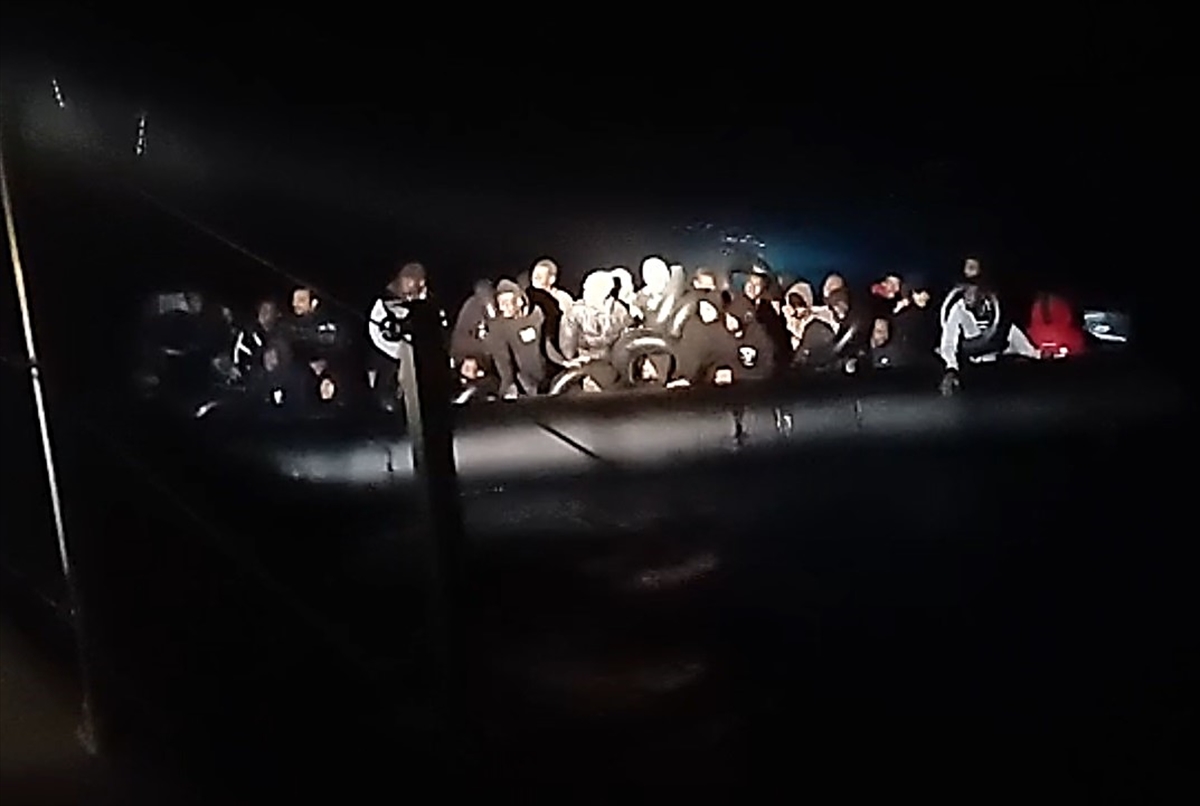 Bölgeye yönlendirilen Sahil Güvenlik ekipleri, Yunanistan unsurlarınca Türk karasularına geri itilen lastik bottaki 48 düzensiz göçmeni kurtardı.