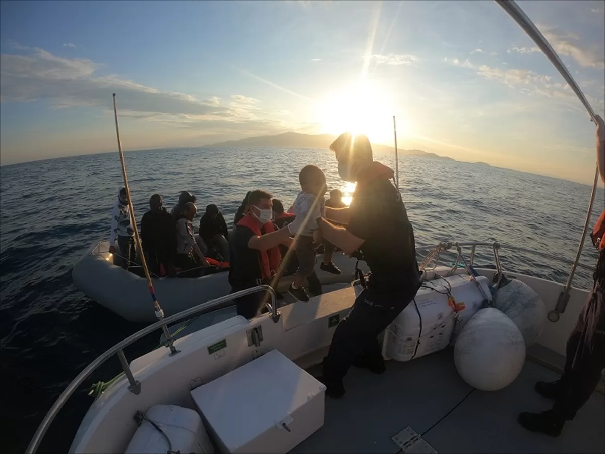 İZMİR (AA) – İzmir'in Dikili ilçesi açıklarında Yunanistan unsurlarınca Türk karasularına itilen lastik bottaki 17 düzensiz göçmen kurtarıldı.
