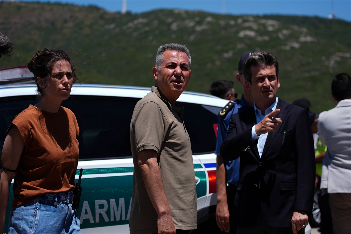 Çeşme'deki yangın bölgesinde incelemelerde bulunan Elban, söndürme çalışmalarıyla ilgili yetkililerden bilgi aldı.