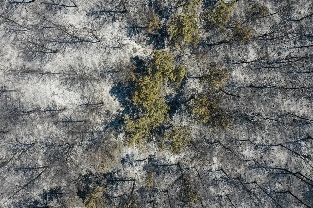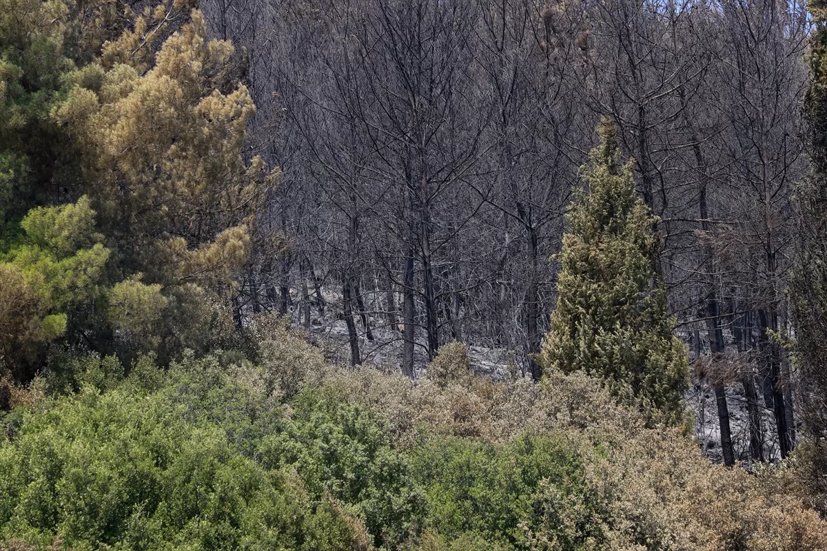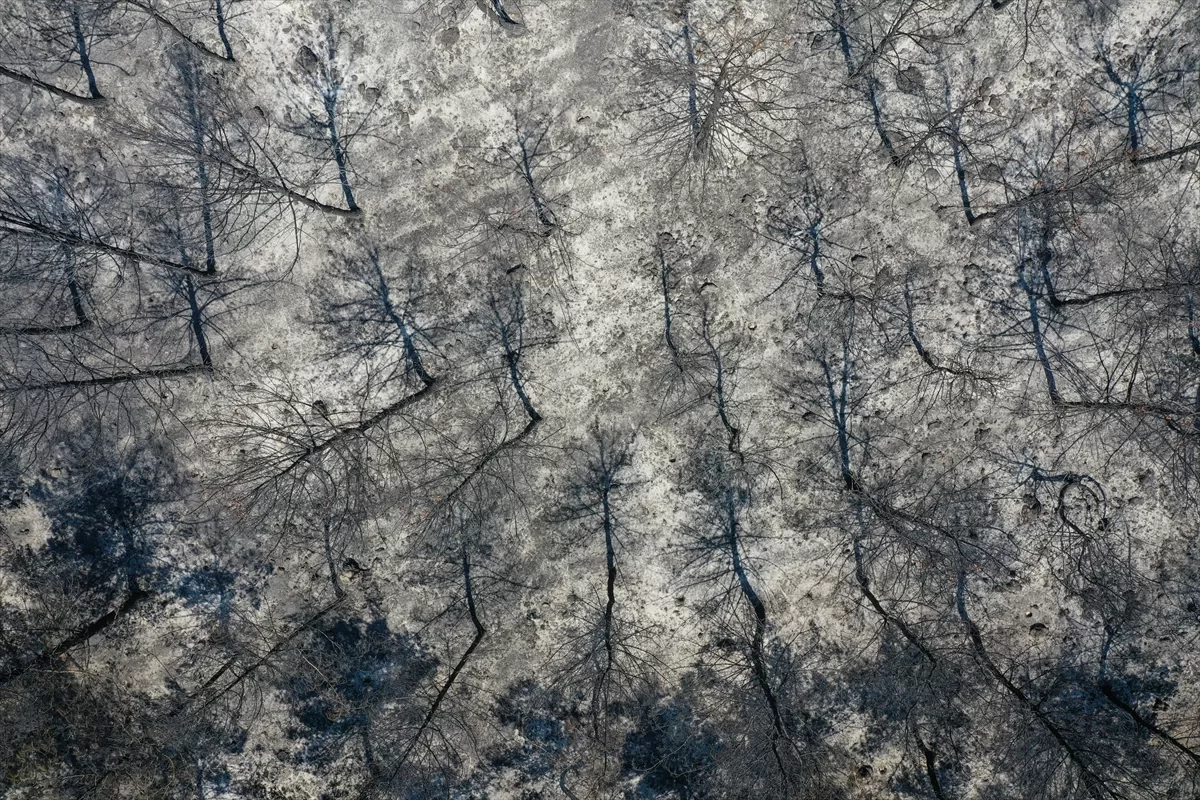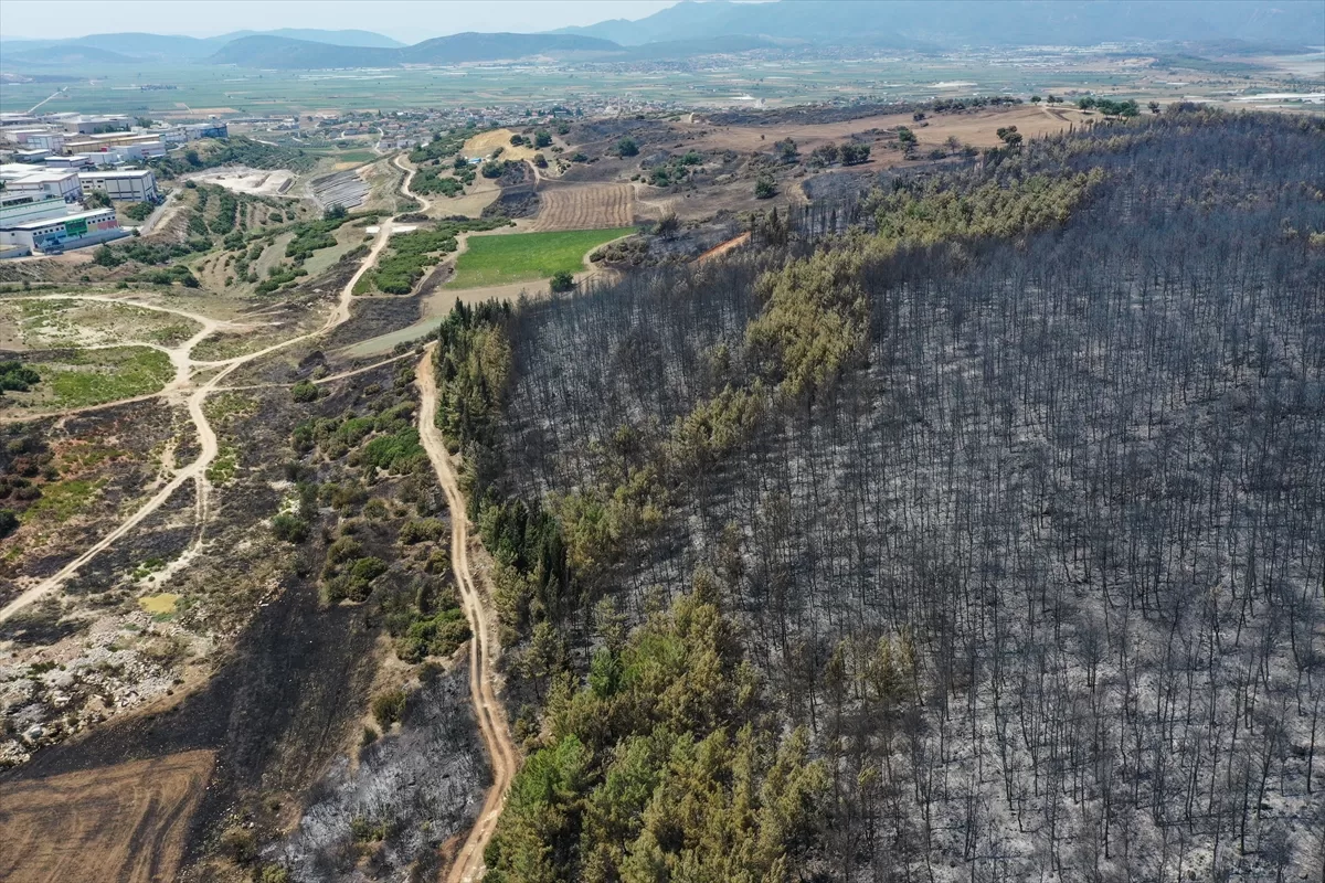 Oğlananası Mahallesi'ndeki orman yangını ardında bölgede siyah bir görüntü bıraktı.