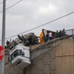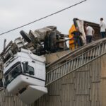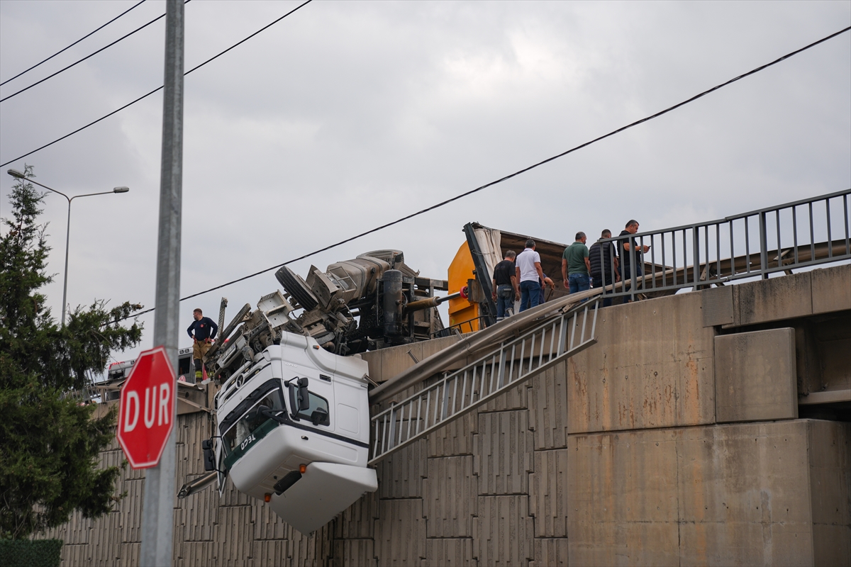 İZMİR (AA) – İzmir'in Bornova ilçesinde, yoldan çıkarak viyadükte asılı kalan tırın sürücüsü yaralandı.