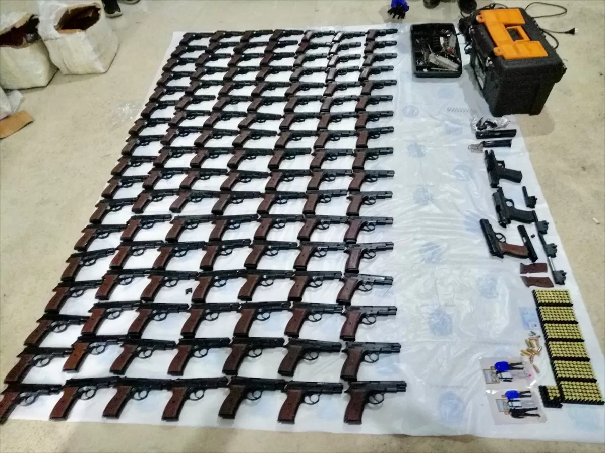 İZMİR (AA) – İzmir'de yasa dışı silah imal ve ticareti operasyonunda 4 kişi gözaltına alındı, 120 kurusıkı tabanca ile silah imalatında kullanılan çok sayıda malzeme ele geçirildi.