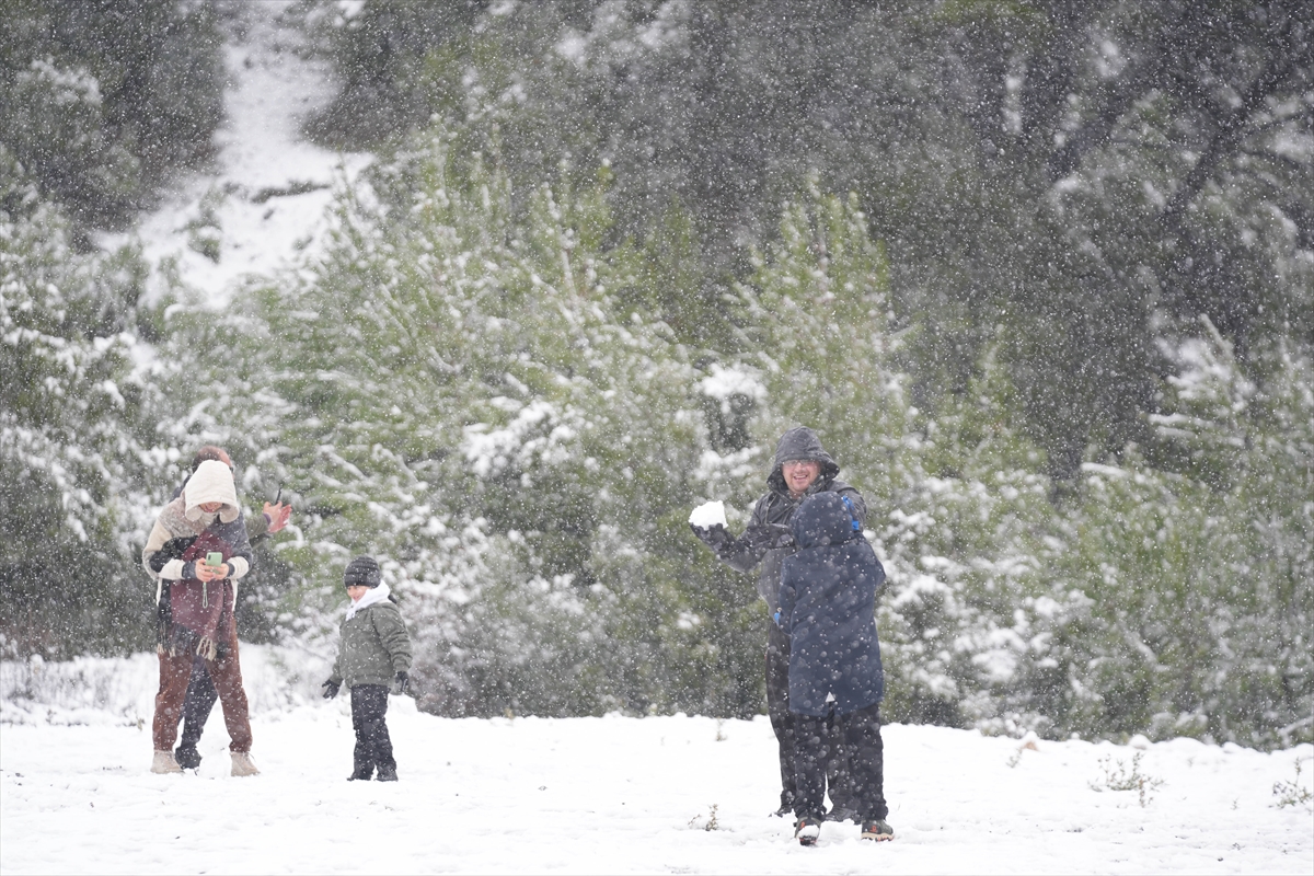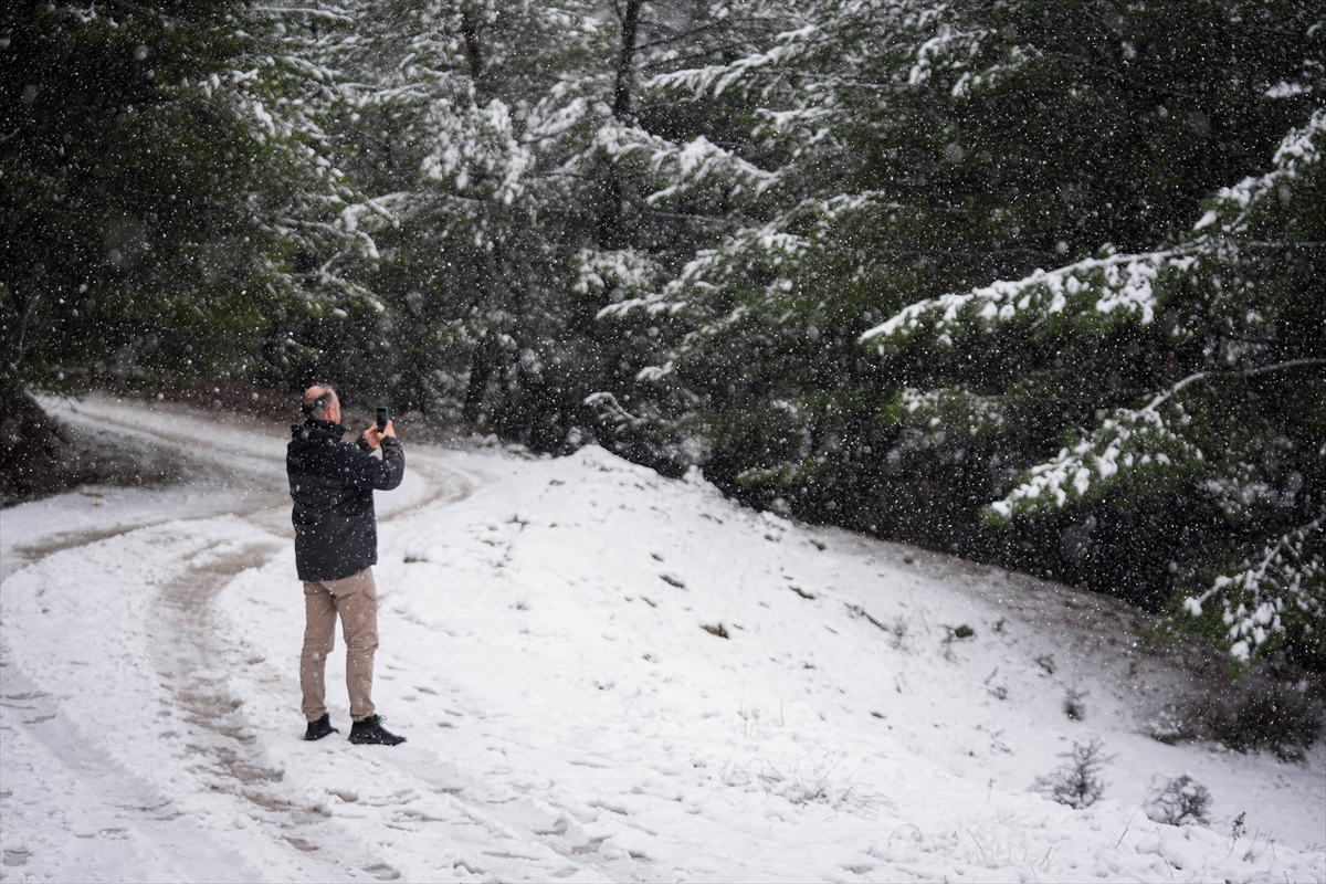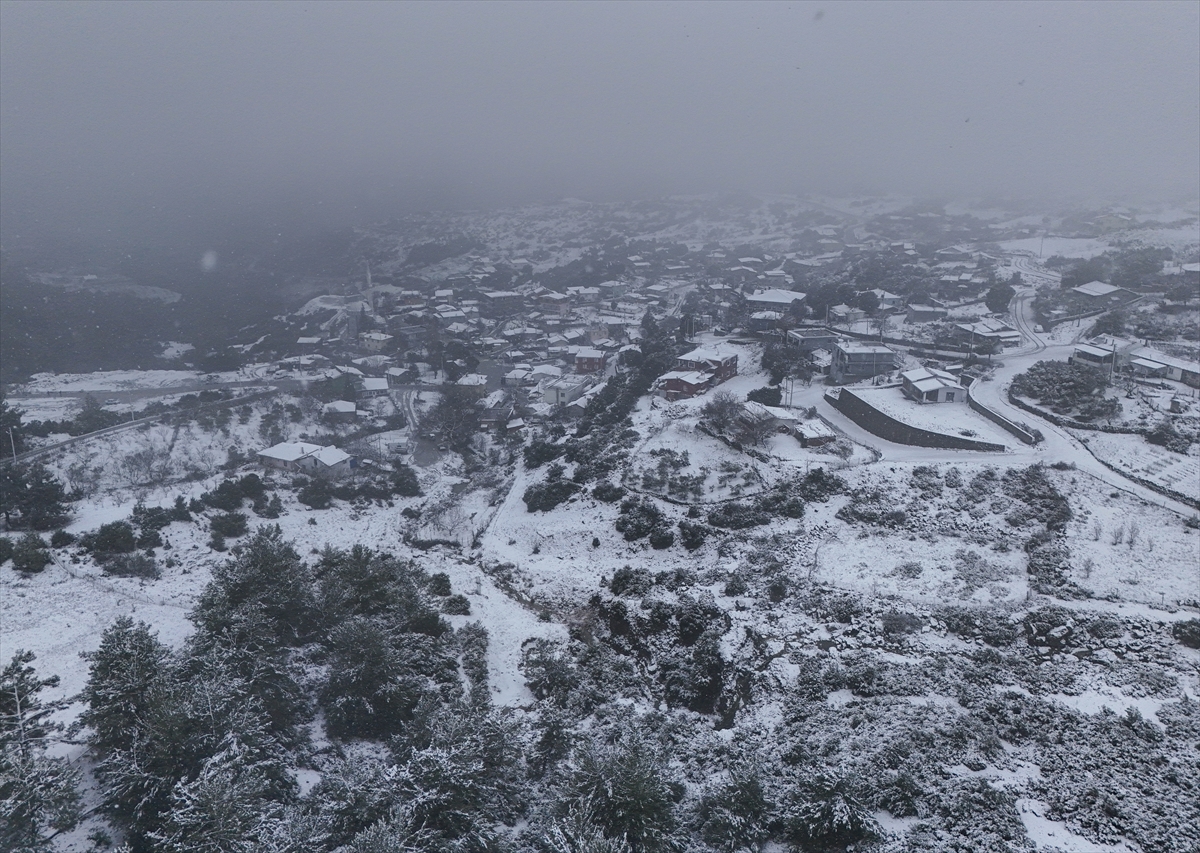 Bornova ilçesine bağlı 650 rakımlı Beşyol Mahallesi, sabah saatlerinde etkili olan kar nedeniyle beyaza büründü. Karla kaplanan çam ağaçları kartpostallık görüntüler oluşturdu.