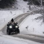 Fotoğraf çektirenler ve kar topu oynayanların yanı sıra bir kişi de ATV ile karlı yolda tur attı.