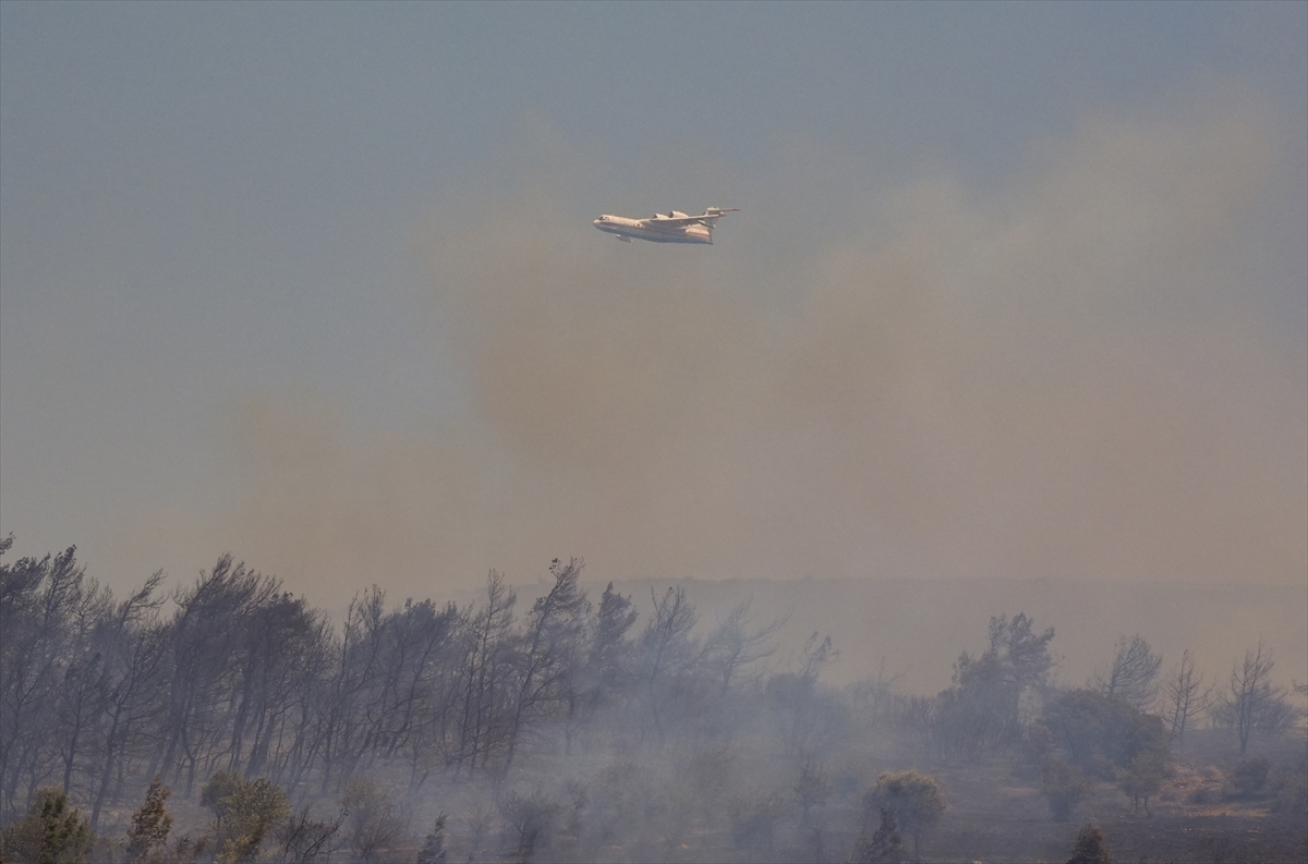 İZMİR (AA) – İzmir'in Foça ilçesindeki ormanlık alanda çıkan yangın, havadan ve karadan müdahaleyle söndürülmeye çalışılıyor.