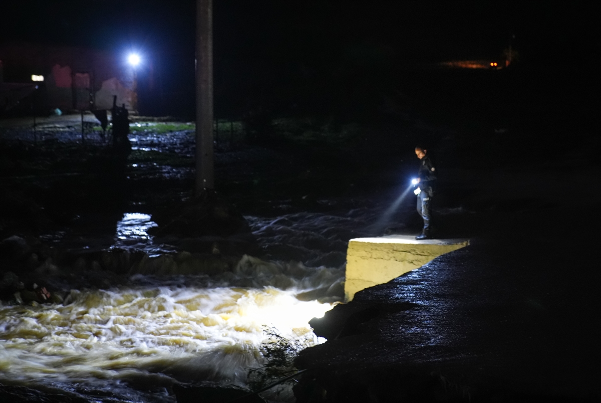 İZMİR (AA) – İzmir'in Foça ilçesinde etkili olan sağanak nedeniyle dere taştı, bazı ev ve iş yerlerini su bastı.