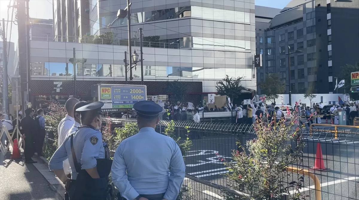 Kalabalık grup, Nibançoo semtinde bulunan İsrail'in Tokyo Büyükelçiliği yerleşkesine yürüdü.