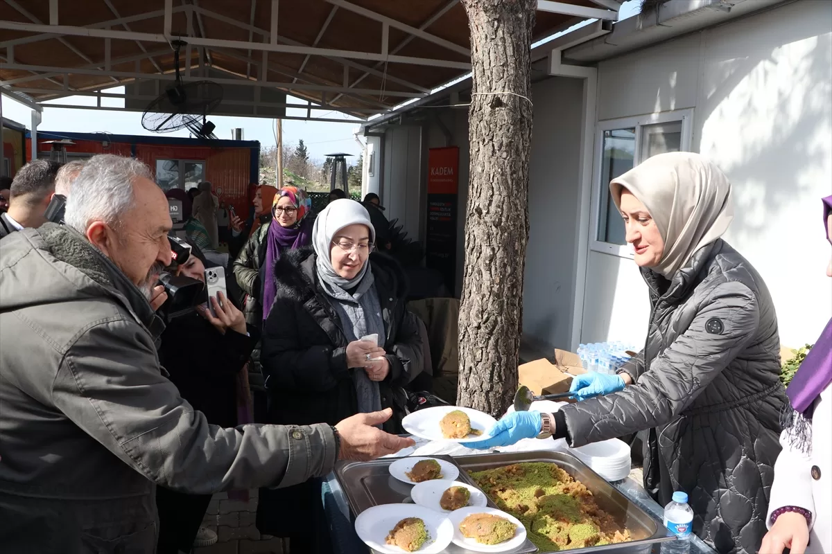 Saliha Gümrükçüoğlu, konuşmaların ardından depremde hayatını kaybedenler için helva dağıttı. Daha sonra mezarlık ziyaretinde bulunan Gümrükçüoğlu ve beraberindekiler, deprem şehitleri için dua etti, Kur'an-ı Kerim okudu.