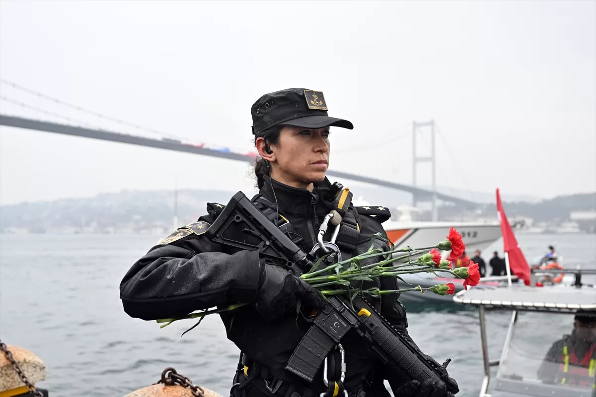 İkili gruplar halinde iple erişim tekniğiyle botlara inen kadın jandarmalar, Ortaköy'de hazırlanan etkinlik alanına ulaştı. Yağmur altında yapılan gösteride vatandaşlarca ilgiyle izlenen kadın jandarmalar karanfillerle karşılandı.