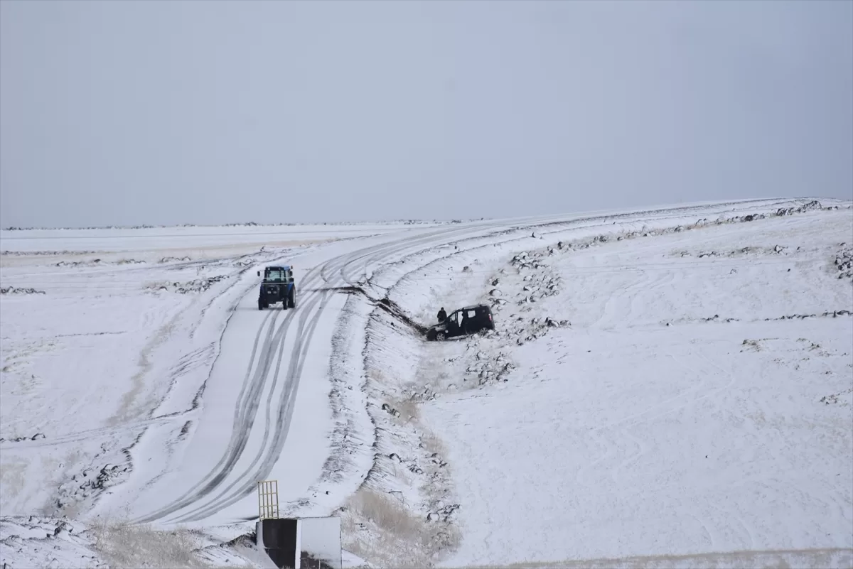 Kar nedeniyle Kağızman-Ağrı kara yolu ulaşıma kapatıldı.