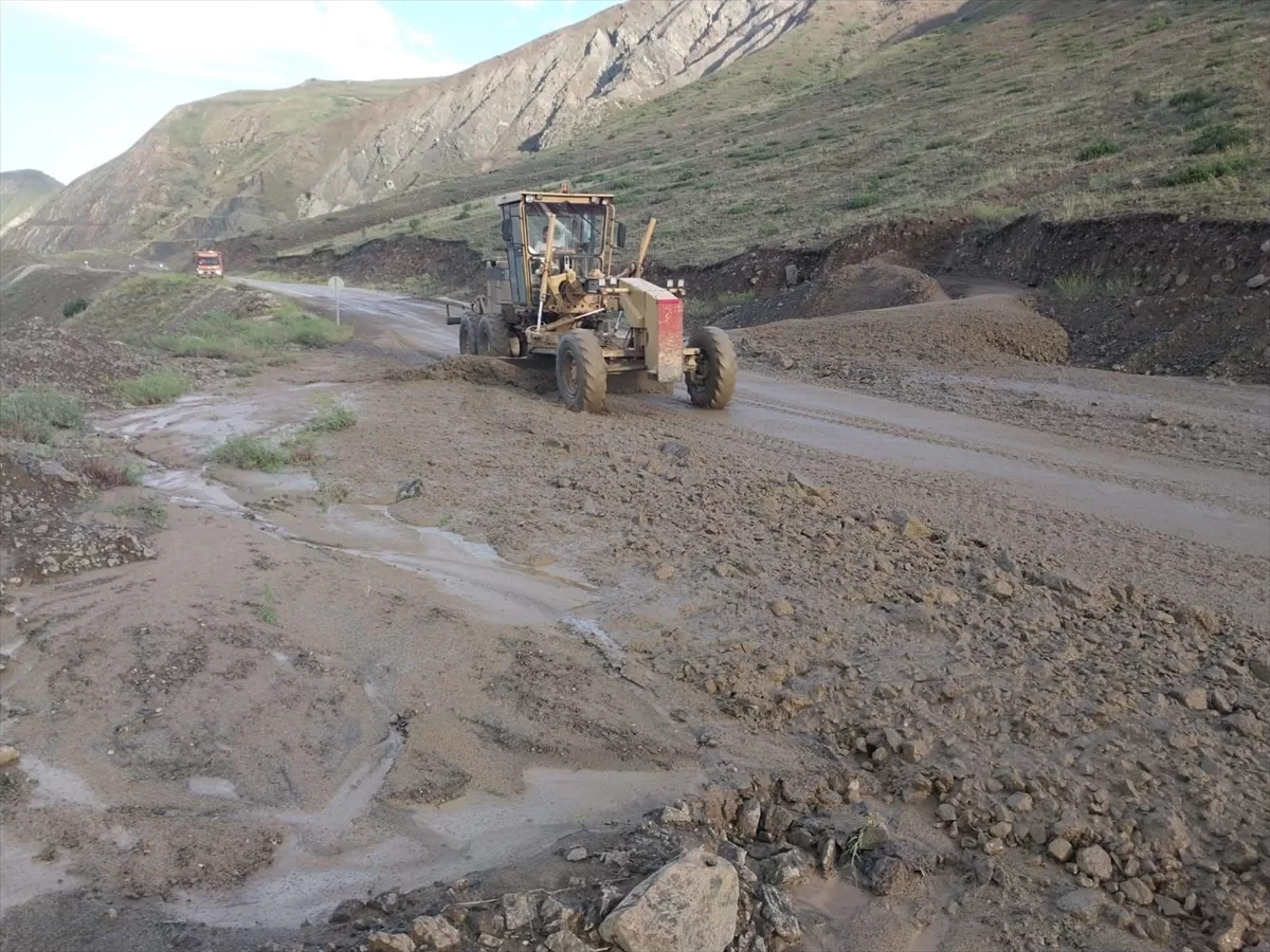 KARS (AA) – Kars'ta etkili olan sağanak nedeniyle Kağızman-Ağrı kara yolunun bazı noktalarında meydana gelen heyelan ulaşımı aksattı.