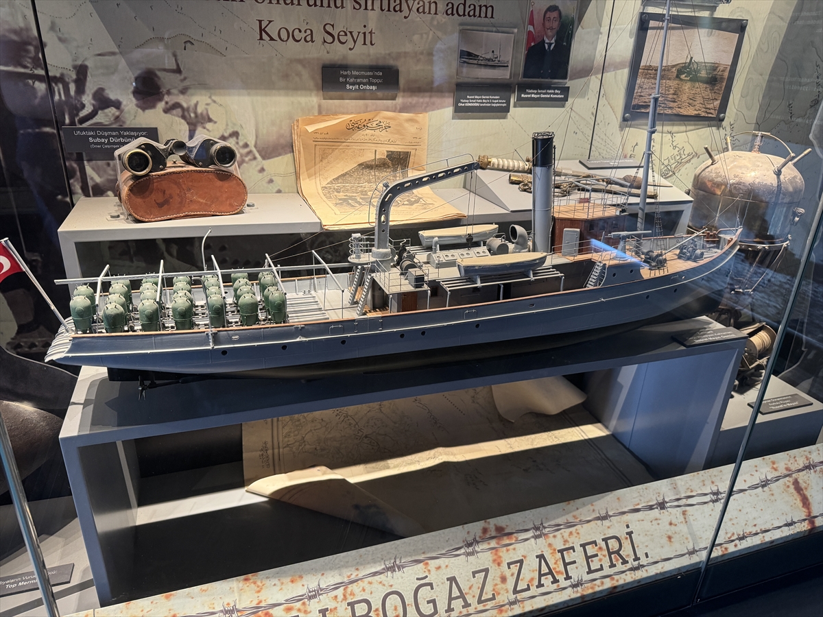 Çanakkale Savaşları'ndaki kahramanlıkların ve yaşananların anlatılması amacıyla kentleri dolaşan tırda, Nusret Mayın Gemisi'nin maketi, İngiliz asker botu, çarpışan mermiler, askerlerin cep saatleri, mayınlar, dönemin askeri kıyafetleri, silahlar, asker künyeleri ve piyade tüfekleri yer alıyor.