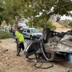 Devrilen otomobilde sürücü ile araçta bulunan E.K.A, Ö.A.Ç, S.K.G. ve M.C.Ö. yaralandı.