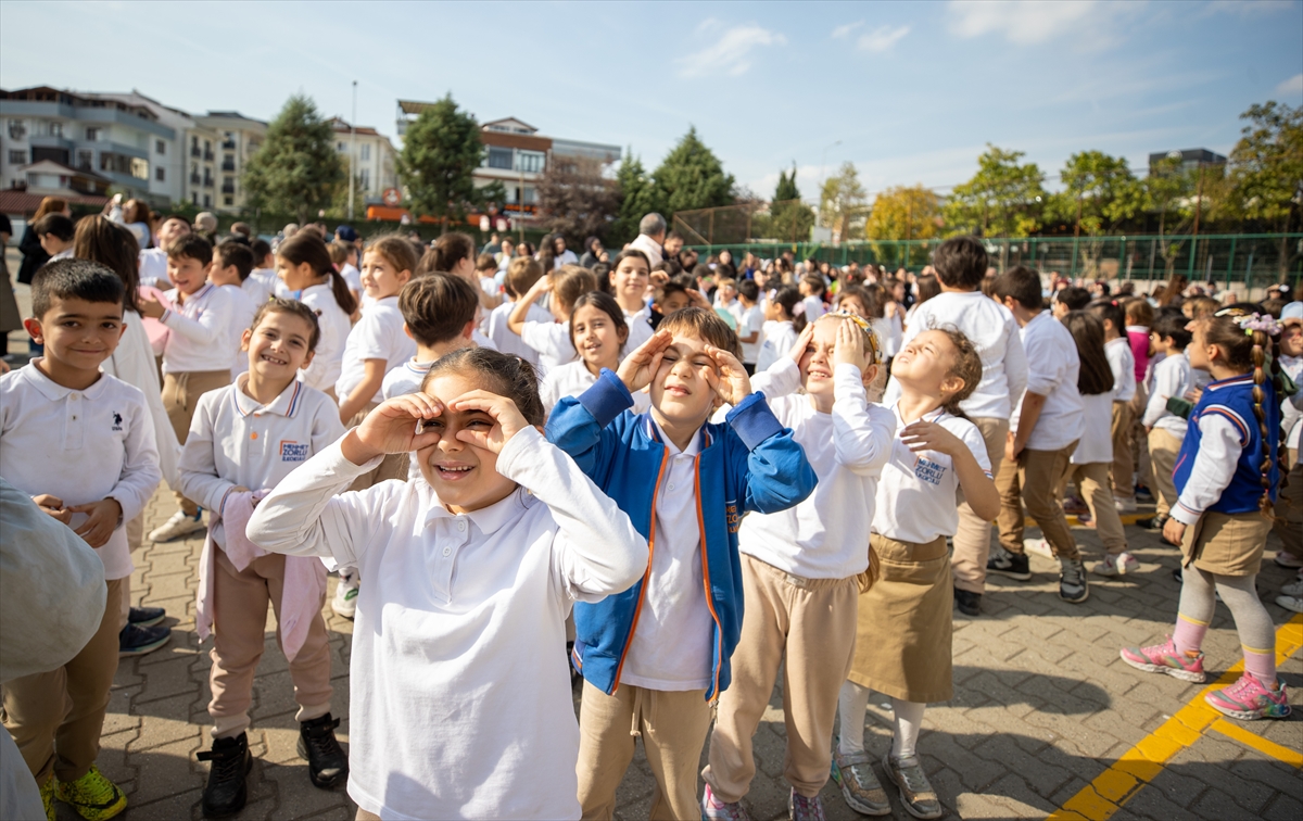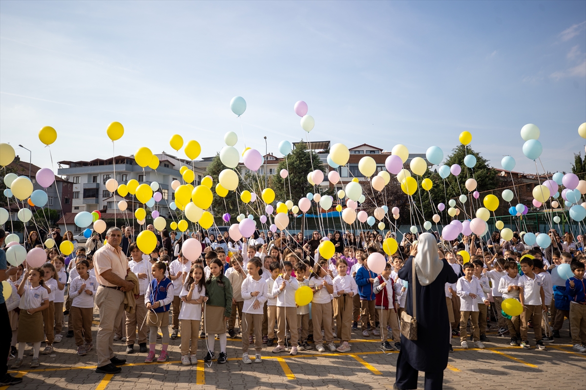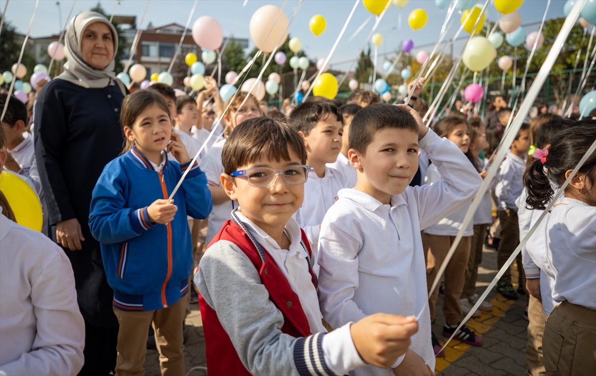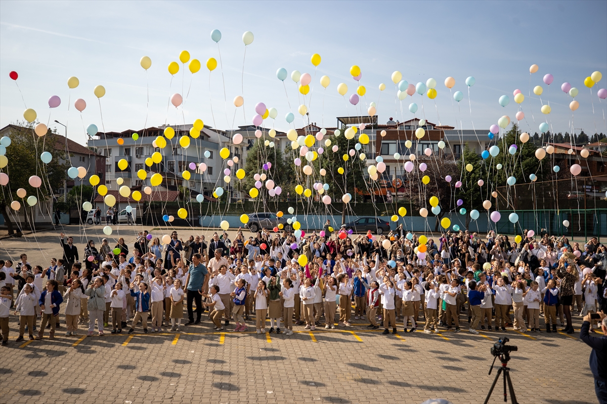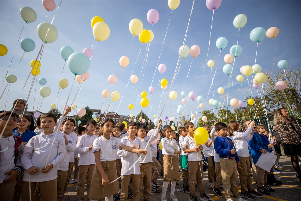 Karataş'ın eğitim gördüğü Mehmet Zorlu İlkokulu öğrencileri, ellerindeki rengarenk balonları küçük kızın geri sayımıyla gökyüzüne bıraktı.