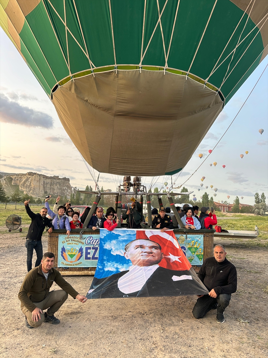 NEVŞEHİR (AA) – Kapadokya'da sıcak hava balonları, 19 Mayıs Atatürk'ü Anma, Gençlik ve Spor Bayramı dolayısıyla Türk bayrakları ve Atatürk posterleriyle uçuş gerçekleştirdi.