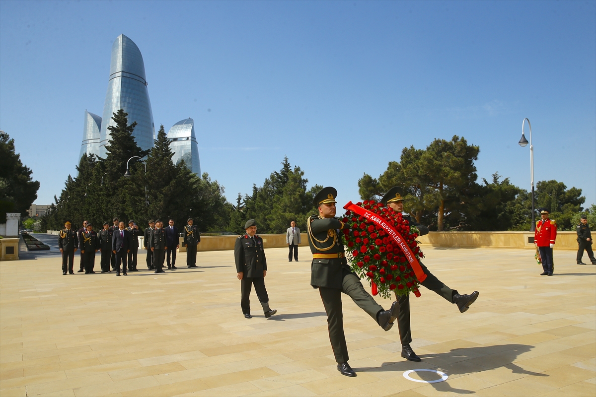 Başkent Bakü'deki temasları çerçevesinde önce merhum Cumhurbaşkanı Haydar Aliyev'in mezarını, daha sonra Bakü Şehitler Hiyabanı'nı ziyaret eden Orgeneral Bayraktaroğlu, burada yetkililerden 20 Ocak 1990'da yapılan katliamla ilgili bilgi aldı.