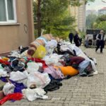 Çöpler nedeniyle evde adım atmakta zorlanan ekipler, atıkları dışarı çıkararak kamyona yükledi.