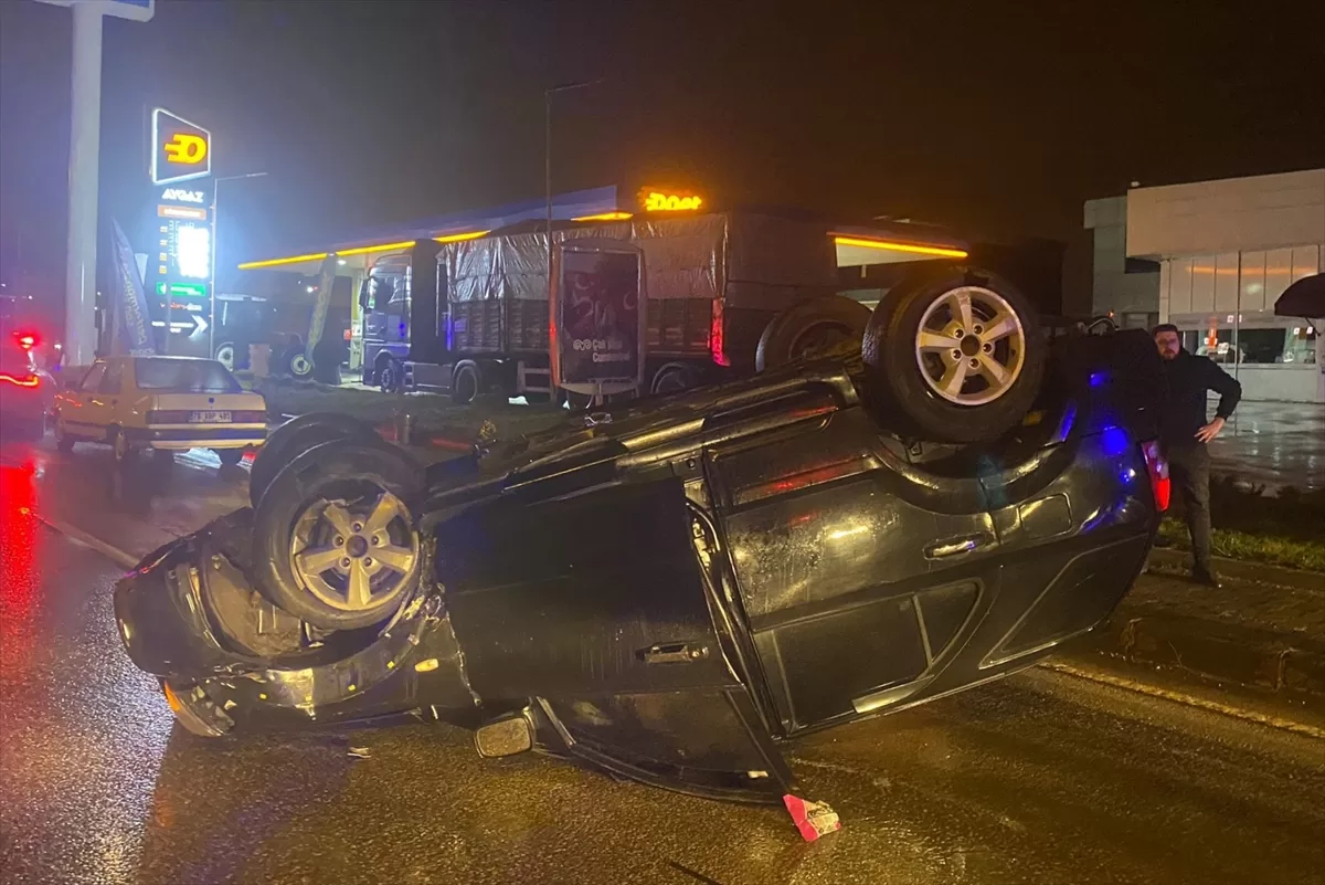 Kazada sürücü ile araçtaki A.S.Ç. ve K.K. yaralandı.