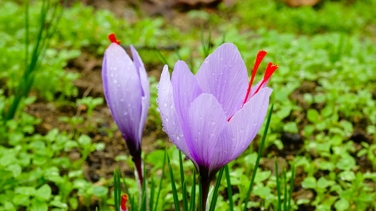 Safran üreticisi İsmail Yılmaz, AA muhabirine, hava sıcaklığının düşmesiyle safranın çiçeklenmeye başladığını söyledi.