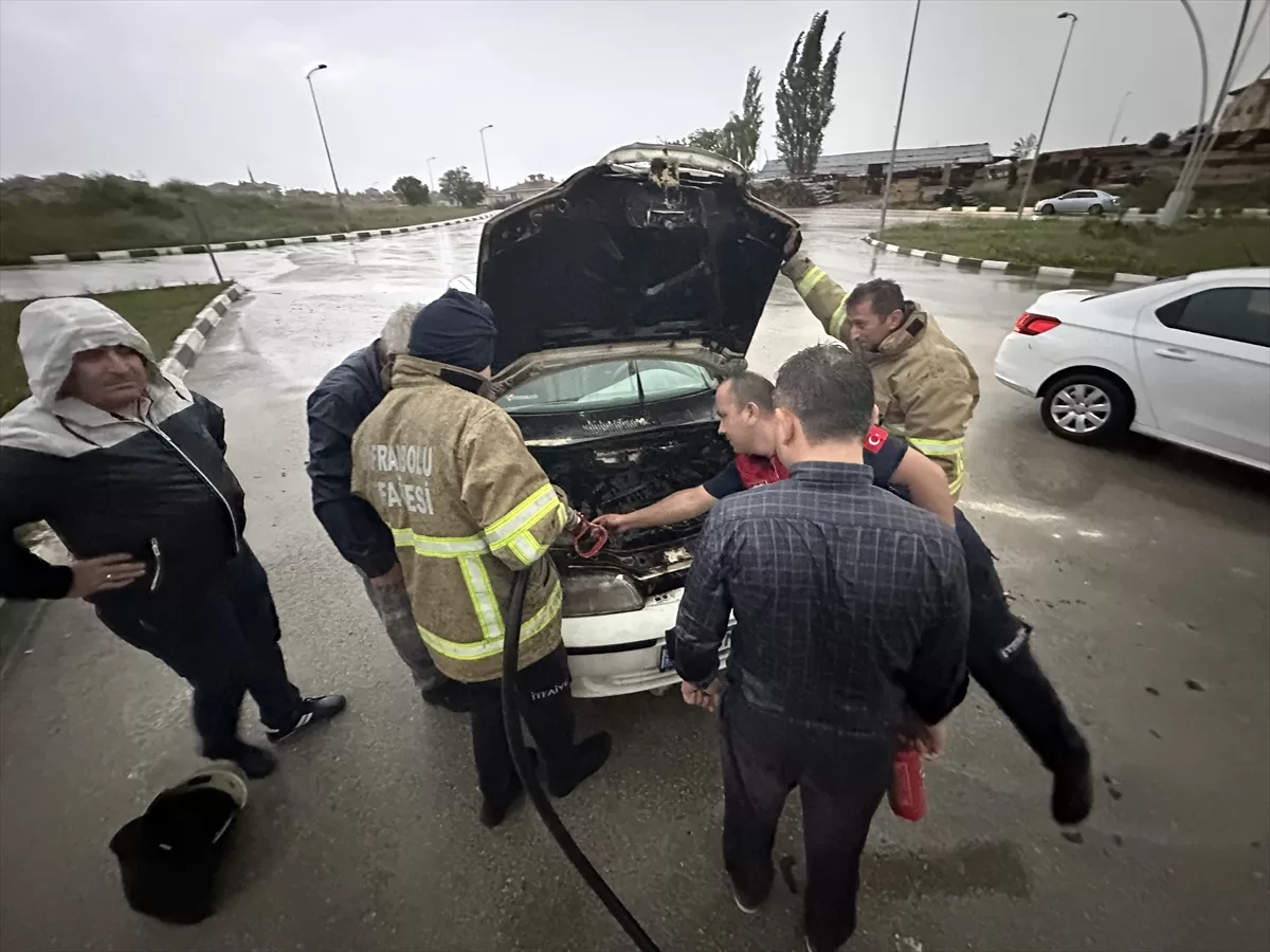 Alınan bilgiye göre, Barış Mahallesi'nde Mustafa Ö. idaresindeki 78 BN 559 plakalı otomobil, Prof. Dr. Necmettin Erbakan Bostanbükü Bulvarı'nda seyir halindeyken henüz bilinmeyen bir nedenle alev aldı.