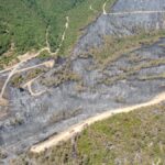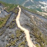 KARABÜK (AA) – Karabük’te, havadan ve karadan yaklaşık 31 saat süren müdahaleyle kontrol altına alınan yangında zarar gören ormanlık alan dronla görüntülendi.