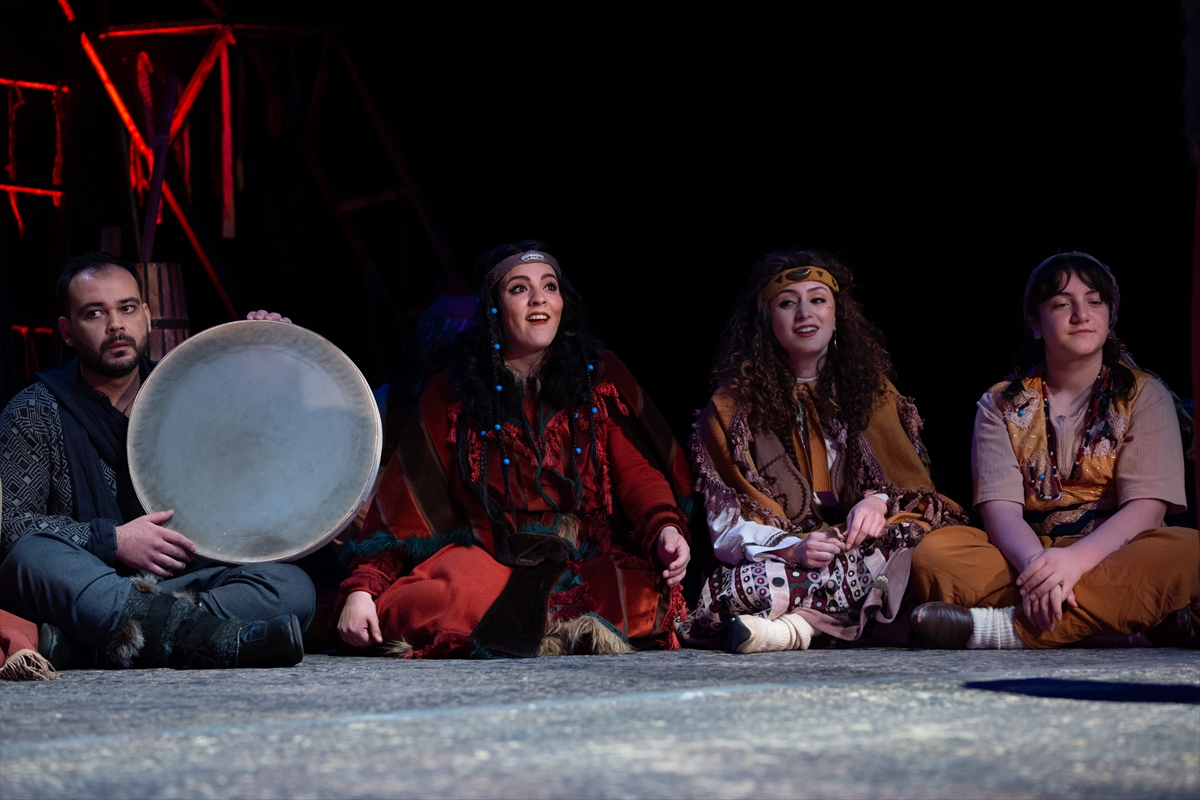 Beştepe Millet Kongre ve Kültür Merkezi'nde sahnelenen "Karacaoğlan" tiyatro oyununda, aşık edebiyatı geleneğinin önemli isimlerinden Karacaoğlan'ın hayatına ve şiirlerine yer verildi.