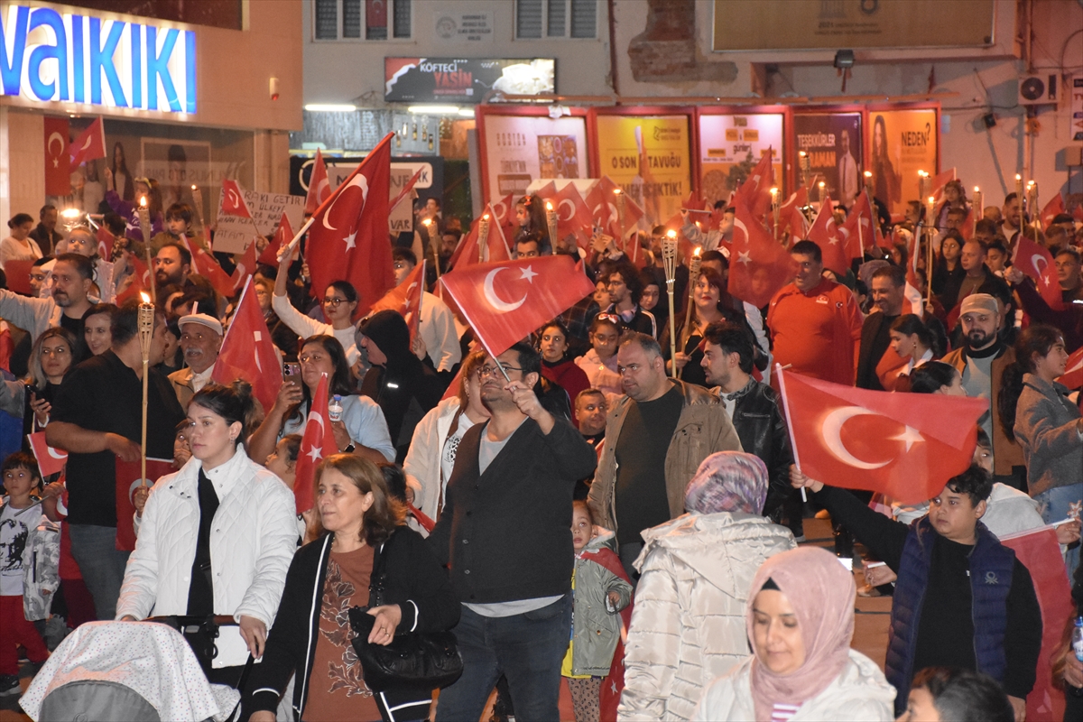 Yürüyüşün ardından meydanda toplanan vatandaşlar, Türk bayrakları ve meşalelerle marşlar söyledi.