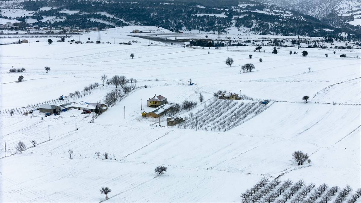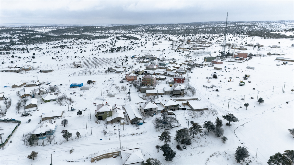 KARAMAN (AA) – Karaman'da etkili olan kar yağışıyla beyaza bürünen köyler dronla görüntülendi.
