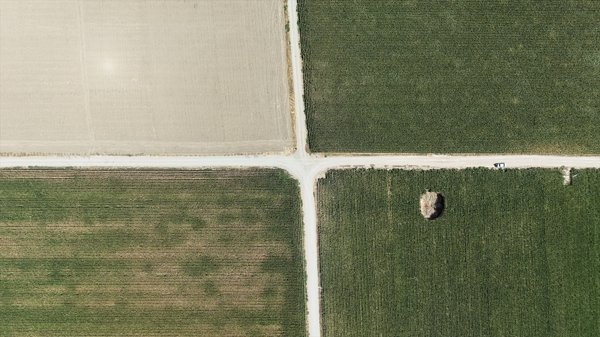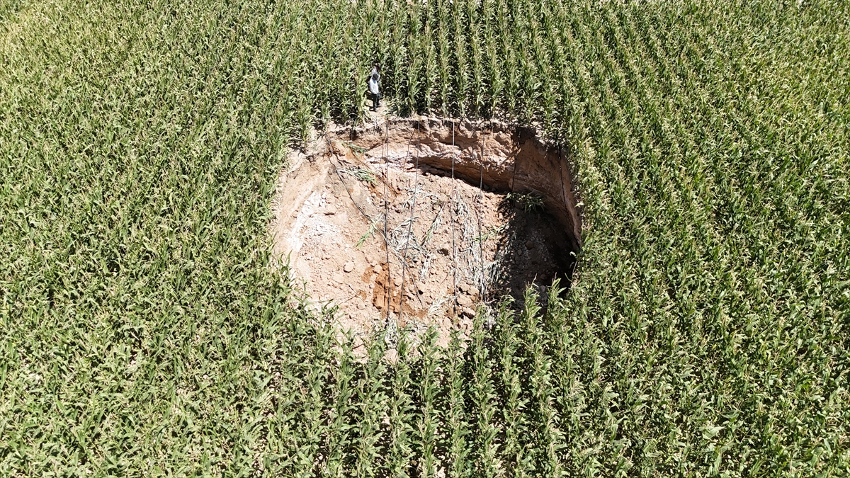 Belde sınırlarındaki mısır tarlasında sulama boruları toplandığı sırada obruğu görenler, durumu yetkililere bildirdi.