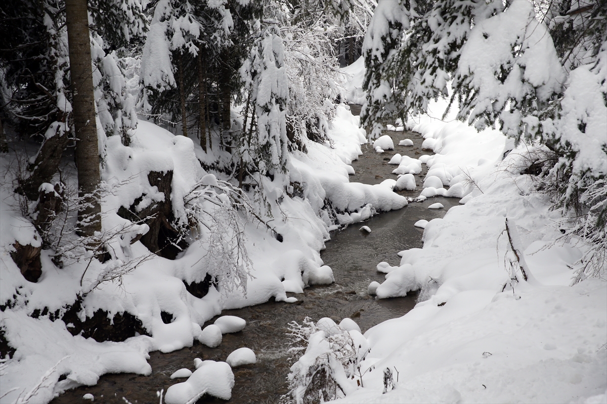 Kastamonu ve Bartın arasında bulunan Küre Dağları'nın Ağlı ve Küre ilçelerini birbirine bağlayan bölümünde kar etkili oldu.