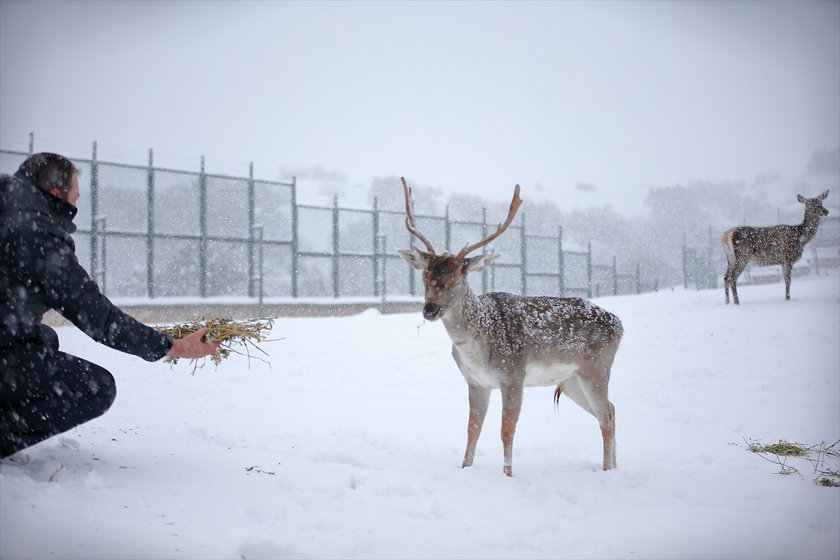 Veteriner İşleri Müdürlüğünde görevli veteriner hekim Mert Günhan, AA muhabirine, kış aylarında yiyecek bulmakta güçlük çeken yabani hayvanlar için doğaya yem bıraktıklarını söyledi.