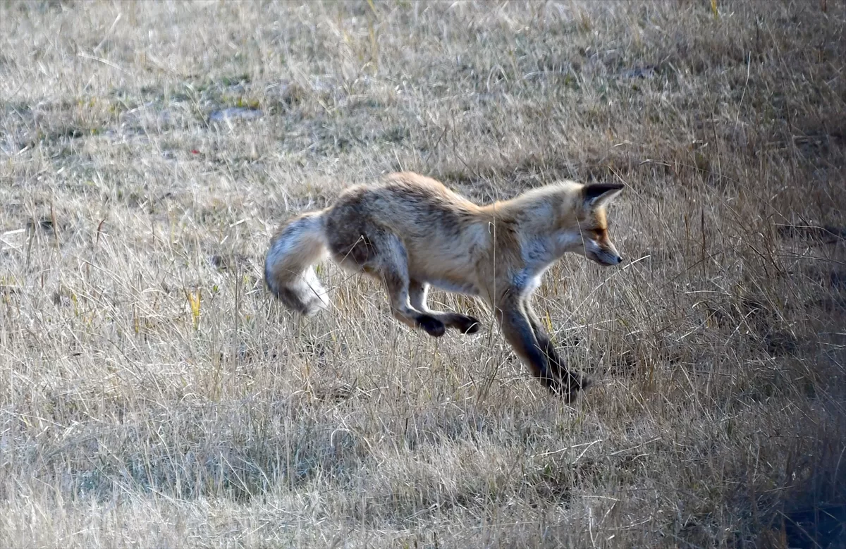 Aç kalan bir kızıl tilkinin Acısu bölgesinde fare avına çıkması ve ilginç hareketleri objektife yansıdı.