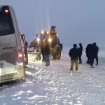 KARS (AA) – Kars’ın Arpaçay ilçesinde kar yağışı ve tipi nedeniyle kara saplanan tur otobüsündeki 30 kişi kurtarıldı.