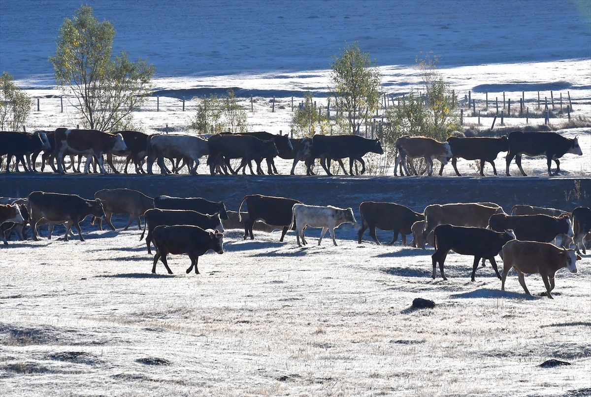 Sabah araçların camları ile bitkiler kırağıyla kaplandı, Acısu Deresi'ndeki küçük göletler buz tuttu. Bazı besiciler ise kırağıyla kaplı alanda hayvanlarını otlatmaya çalıştı.