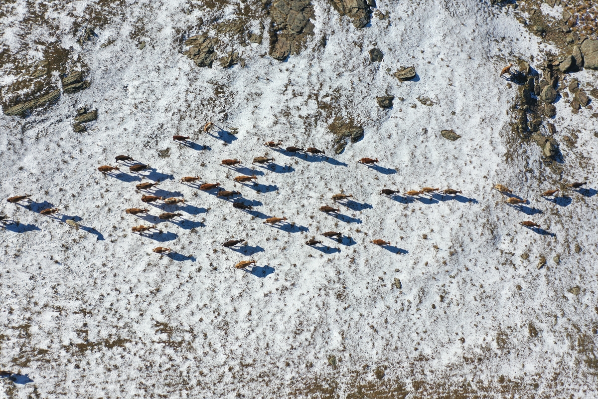 Çoban Hayati Bayşu, AA muhabirine, kasım ayının 15'ine kadar hayvanları dışarıda otlattıklarını belirterek, "Bu kar kalkar, her sene böyle yağar. Kar yağdığı için hayvanları ahırdan geç çıkartıyoruz, erken getiriyoruz." dedi.