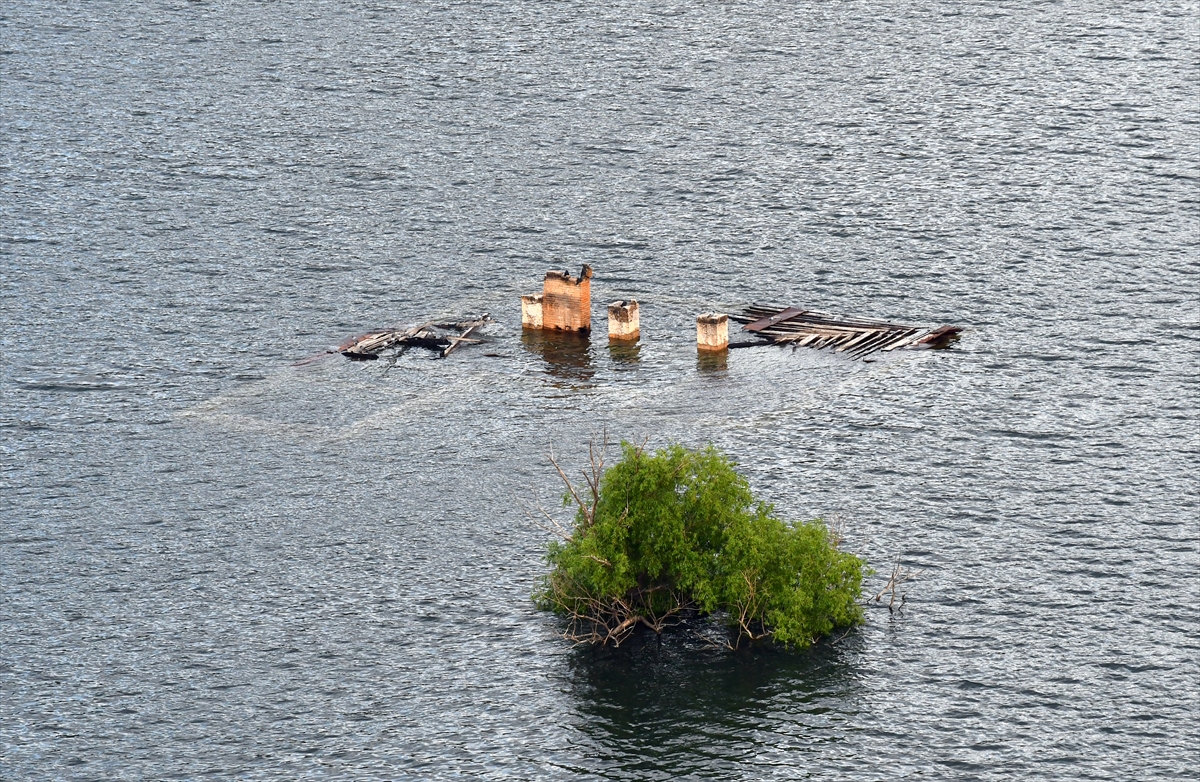 KARS (AA) – Kars'ın Sarıkamış ilçesindeki Karakurt HES Barajı'nda doluluğun artmasıyla eski yerleşim yeri tekrar su altında kaldı.