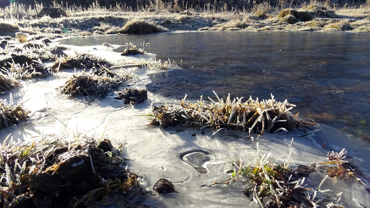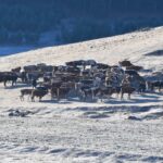Küçük derelerin yüzeyinin buz tuttuğu ilçede besiciler, beyaz örtüyle kaplı çayırlık alanda hayvanlarını otlatmaya çalıştı.