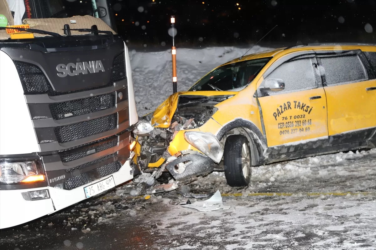 Kars istikametinden Kağızman yönüne giden Mehmet S. yönetimindeki 76 T 0032 plakalı taksi, 2020 rakımlı Paslı Geçidi'nde etkili olan yoğun kar yağışı nedeniyle kayganlaşan yolda, karşı yönden gelen Veysel T'nin kullandığı 25 ABG 902 plakalı tırla çarpıştı.