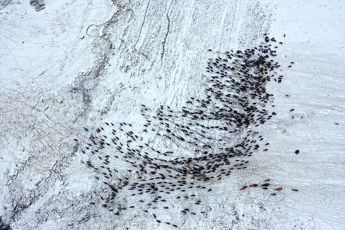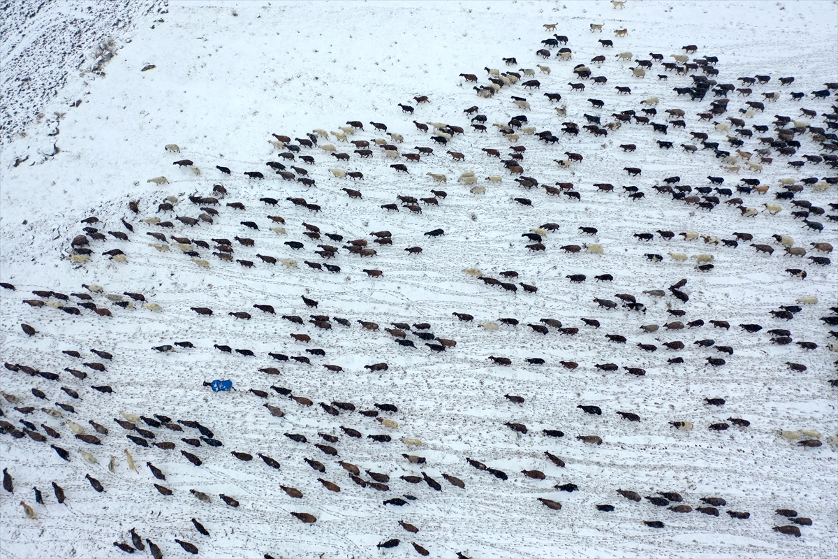 Şakir Uyusun da kışın erken geldiğini ifade ederek, sürülerini kar altında köye ulaştırmaya çalıştıklarını söyledi.