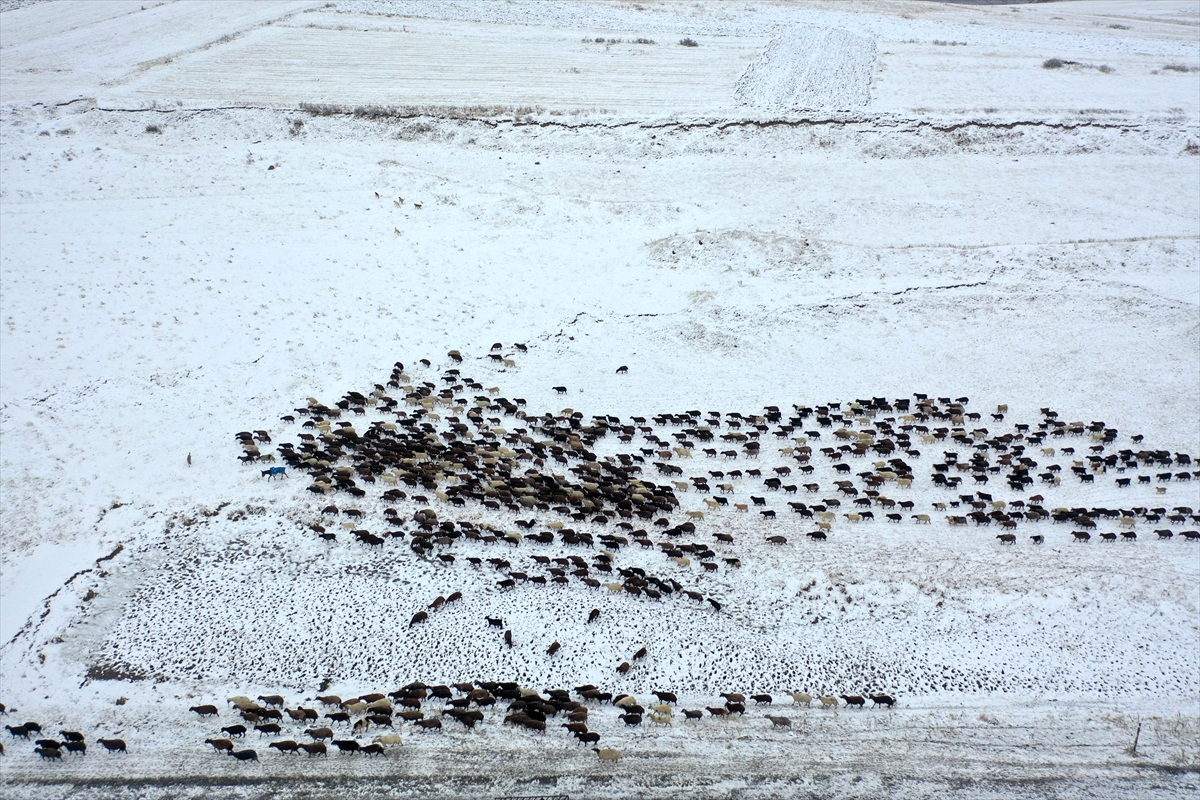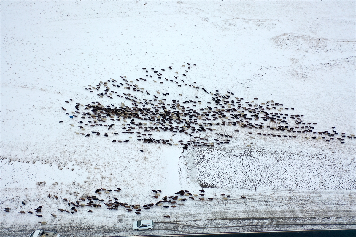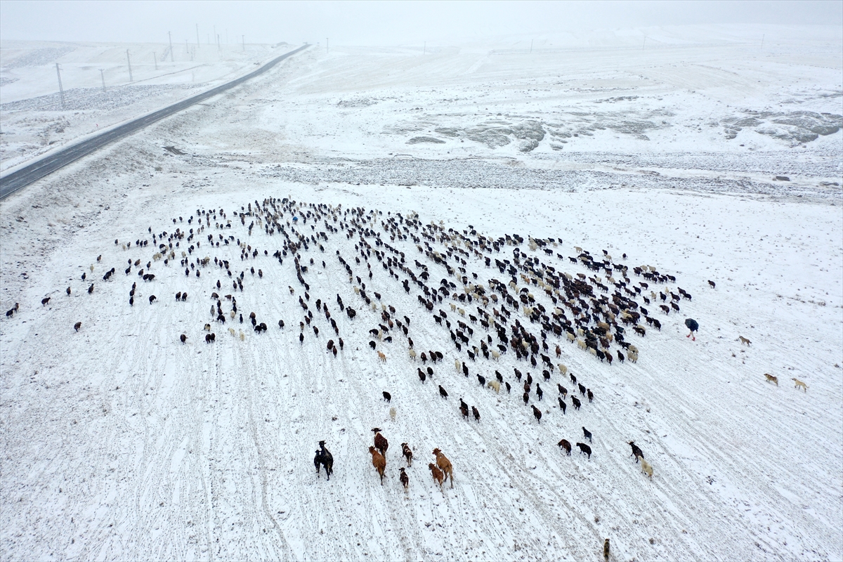 KARS (AA) – Kars'ta yaz boyunca yaylada hayvansal üretim yapan göçerler, dönüş yolunda karla karşılaştı.