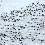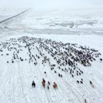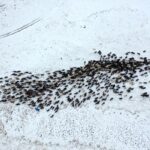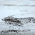 Havaların soğumasıyla dönüş yoluna geçen göçerler, yüzlerce sürüyle ilerlerken kar yağışına yakalandı.