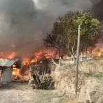 Yangından ilk belirlemelere göre 10 ev etkilendi. Evlerde büyük hasara neden olan yangını söndürme çalışmaları sürüyor.