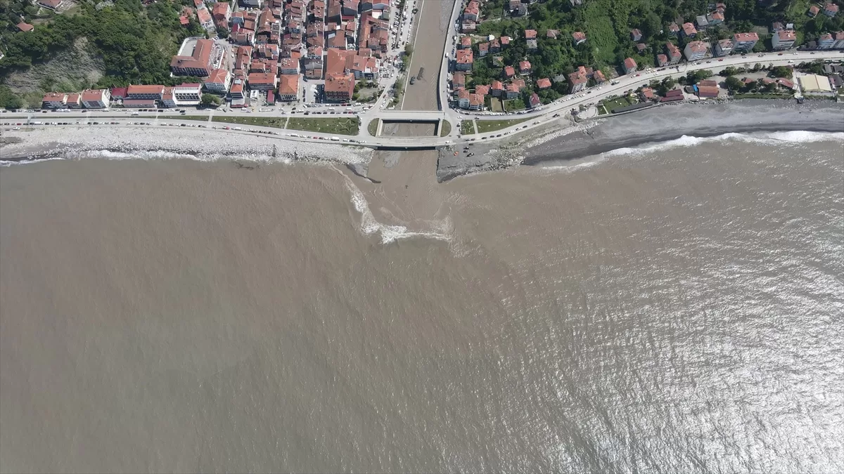İlçe merkezinde İnebolu Çayı'nın taşıdığı çamur, Karadeniz'in turkuaz rengini değiştirdi.
