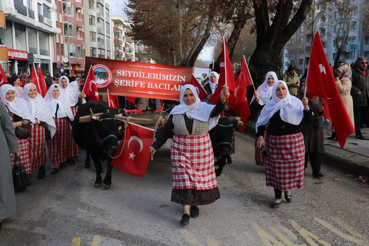 Kışla Parkı önünde bir araya gelen kadın dernekleri üyeleri ile vatandaşlar, önlerinde kağnı, ellerinde Türk bayraklarıyla Cumhuriyet Meydanı'na kadar yürüdü.
