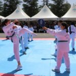 Jandarma ERVA Spor Okulları öğrencileri ile komandolar gösteri sundu, İl Jandarma Komutanlığının eğitimli köpekleri uyuşturucu madde ve patlayıcı bulma, iz takip yeteneklerini sergiledi.