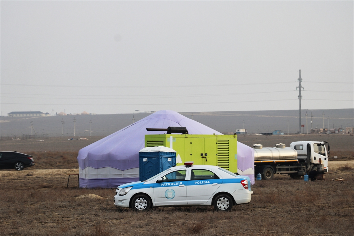 AKTAU (AA) – Kazakistan'ın Aktau kenti yakınlarında Azerbaycan Hava Yollarına (AZAL) ait yolcu uçağının düştüğü bölgede delil toplama çalışmaları yapılıyor.