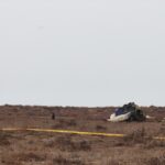 Güvenlik güçleri tarafından sıkı önlemlerle korunan bölgede, uçağın ikiye bölünmüş enkazı hala duruyor.