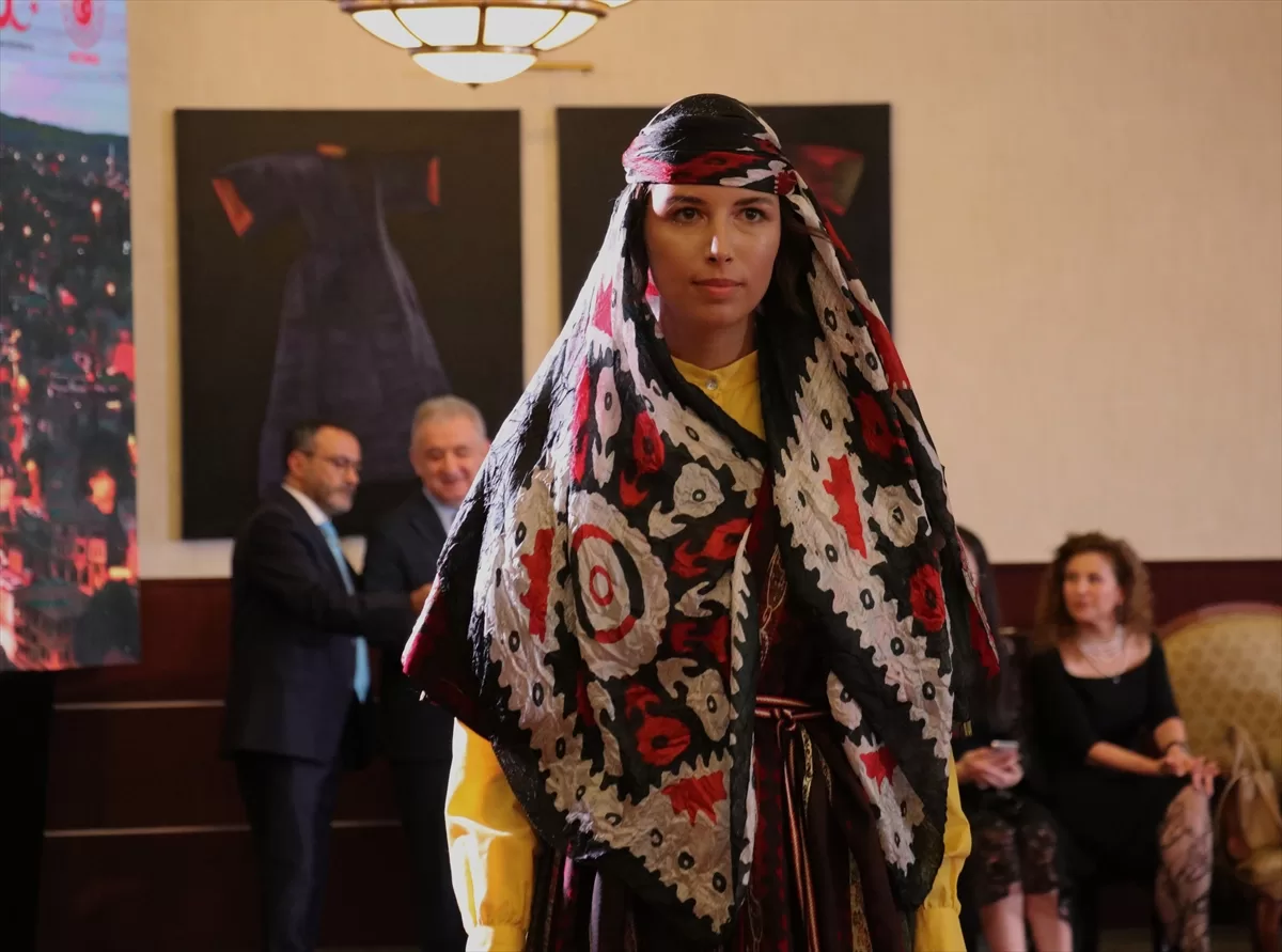 Türk mutfağından lezzetlerin ikram edildiği defilede, kıyafetlerin, Türkiye'nin hangi bölgelerini temsil ettiğine ve tarihine ilişkin de bilgi verildi.